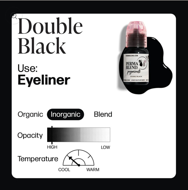 رنگ دبل بلک پرمابلند مشکی مناسب خط چشم و بن مژه بر پایه کربن با کاشت رنگ عالی است . این رنگ کربن بیشتری نسبت به ایلاینر بلک دارد و مشکی تر است.