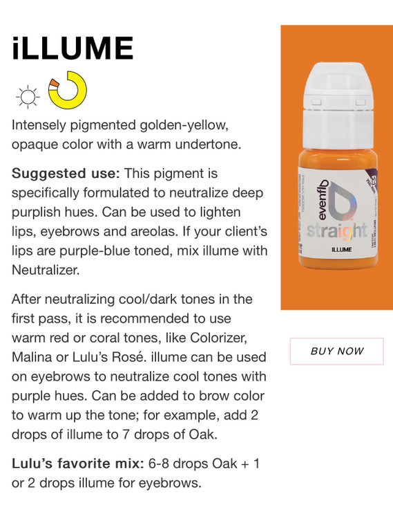 رنگ زرد طلایی با تناژ گرم، از این رنگ میتوانید به عنوان روشن کننده و گرم کننده در رنگ های ابرو و خنثی کننده لب های تیره با تناژ بنفش به کار ببرید.