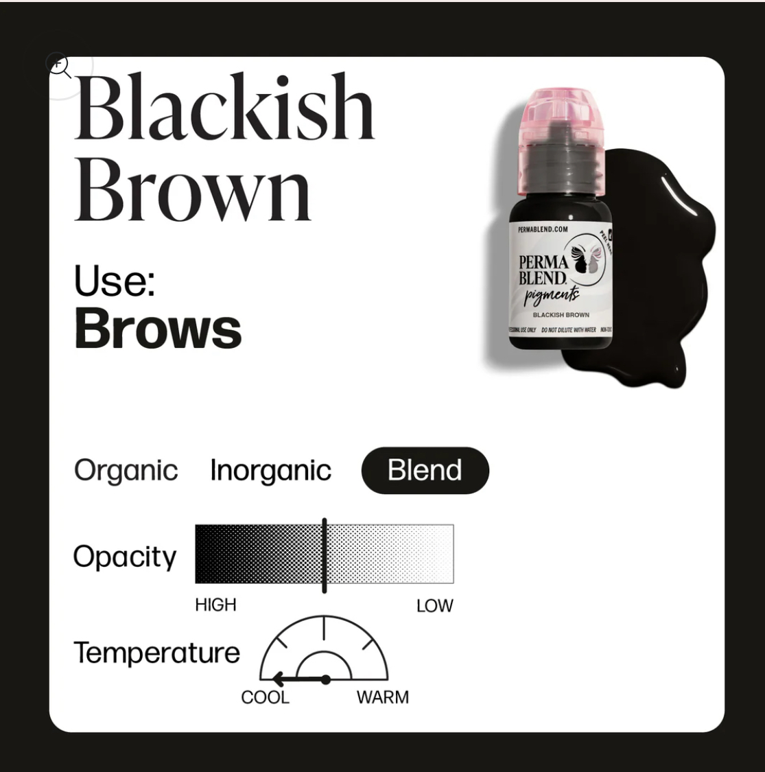 بلکیش برون قهوه ای تیره سرد با تناژ مشکی و دودی است که برای کسانی که ابروهای مشکی دارند و یا خط چشم قهوه ای دوست دارند کاربرد دارد.