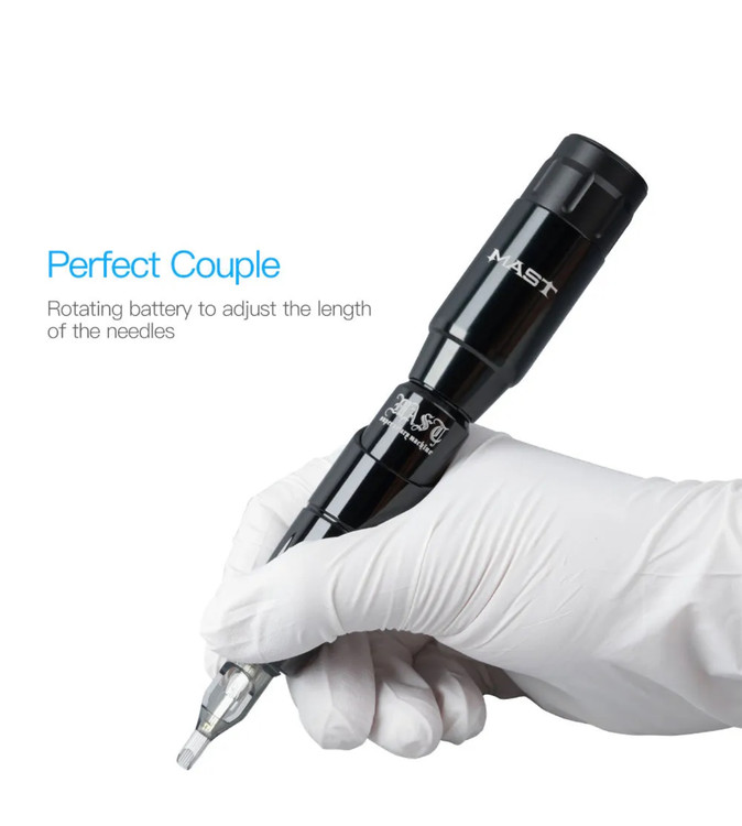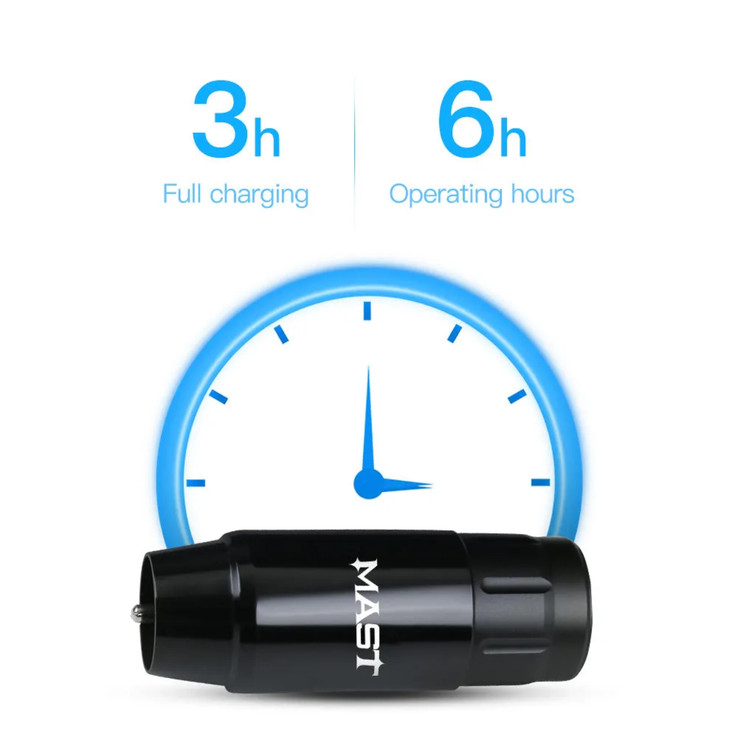 دستگاه مست تور وایرلس همراه یک باتری است، برای استفاده این دستگاه شما دیگر نیاز به ترانس ندارید، باتری این دستگاه تا 3ساعت فول شارژ می شود و میتوانید با آن برای 6 ساعت کار کنید. این دستگاه استروک 3/5 دارد که به راحتی میتوانید با آن لاین، شیدینگ برای صورت و بدن کار کنید. دور موتور دستگاه 9000 rpm است و ولتاژ مناسب برای کار با این دستگاه 5 تا 8 ولت می باشد.