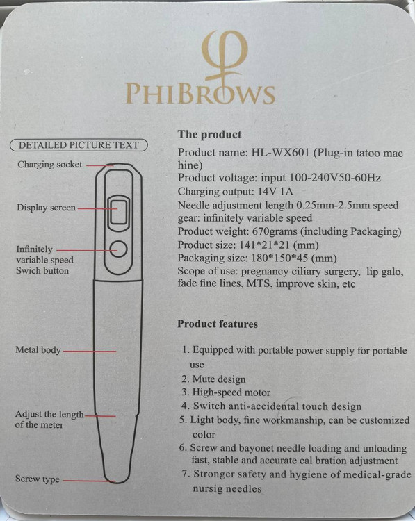 دستگاه میکروپیگمنتیشن فیبروز دارای ولتاژ 14 ولت است که برای تتوی لب، چشم و ابرو و ریمو کاربرد دارد.